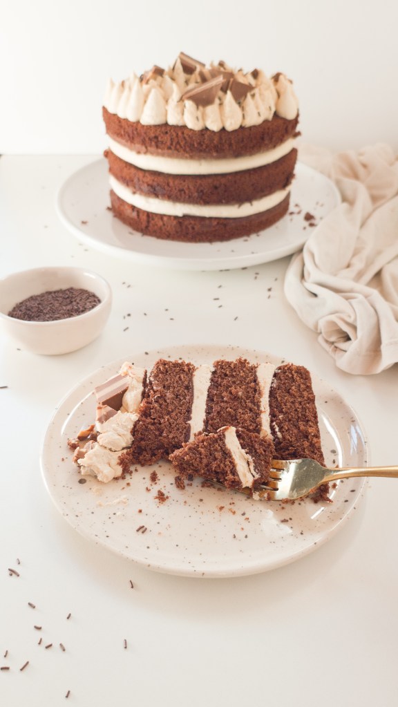 - Para el armado de la torta, intercalar una capa de bizcocho de chocolate por una de ganache. En este punto, podes sumarle algún licor de tu preferencia para embeber los bizcochos, como Baileys o Tía María. Para asegurarse que quede igual cantidad de relleno en cada capa, podes usar una manga pastelera.